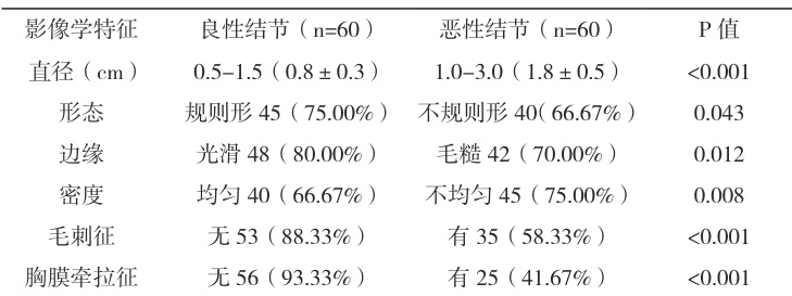 2.2 肺部小结节的影像学特征与良恶性的关系