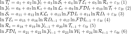 为了分析省 FDI 对碳排放量的影响,基于上文的理论分析,并且借鉴了卞淑贤(2017)提出的模型,本文建立如下的联立方程组模型: