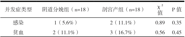 通过上表中的数据可知,两组产妇发生感染、贫血等并发症的发生率并无显著差异( P>0.05 ).