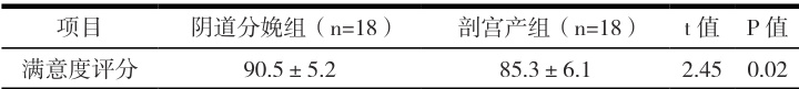 通过上表中的数据可知,阴道分娩组产妇的护理满意度显著高于剖宫产组产妇( P<0.05) 。