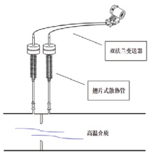 如图示,在差压取压管与法兰之间安装散热管,通过散热管将介质温度降低至双法兰膜片正常工作范围,实现高温介质的差压测量。安装前需要根据温差、介质特性、介质压力参数对散热管散热效率、材质、重量等进行综合分析选型。