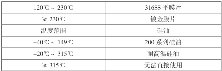 不同工况下双法兰差压变送器膜片及硅油的适用范围可参考表 1 可采加装散热管的方式选择成本更低的双法兰。