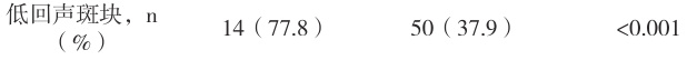 在影像学特征方面,事件组患者更常表现为不稳定斑块特征。HR-MRI 显示,事件组中斑块内出血(IPH)检出率为 66.7% (12/18),显著高于非事件组的 22.7% (30/132)( χ2=18.34 , P<0.001 );纤维帽破裂发生率为 72.2% (13/18)vs 31.8% (42/132),差异显著( P<0.001 )。超声检查结果显示,事件组低回声斑块比例达 77.8% (14/18),明显高于非事件组的 37.9% (50/132)( P<0.001 )。