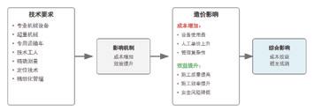 预制构件的应用对施工技术和设备配置提出了新的要求,这些技术要求的变化对工程造价产生间接影响。预制构件的运输、吊装、安装等环节需要专业的机械设备和技术支持,这增加了项目的设备投入成本。大型预制构件的吊装需要配备相应吨位的起重机械,运输过程需要专用的运输车辆,这些设备的使用成本在一定程度上提高了工程造价。技术要求的提升也对施工人员的专业素质提出了更高要求。预制构件的安装需要具备相应技能的技术工人,这种专业化要求可能导致人工单价的上升。预制构件施工得运用更精准的测量及定位技术,对施工管理精细化方面的要求更高,这使项目管理的复杂程度上升,成本投入增多,这种技术要求的上扬也带来了对应的益处,包含施工质量改善、施工效率增进以及安全风险降低,这些积极效应在一定程度上能够抵消技术投入增加带来的成本压力,下图 4 为预制构件技术要求与设备投入对工程造价的影响机制图。