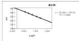 准确移取 5μg 、 10μg 、 20μg 、 50μg 、 100μg 和 200μg 氟标准使用液(浓度为 10mg/L )于 50ml 容量瓶中,加入 10mlTISAB 溶液,用水定容至标线。将标准系列溶液依次移入 100ml 聚乙烯烧杯中,用磁力搅拌器搅拌均匀后用精密氟度计测定电位值。横坐标为氟含量 Ξ(ΛμΛε) )的对数,纵坐标为其对应的电位值 (mV) ),建立标准曲线如图 1:
