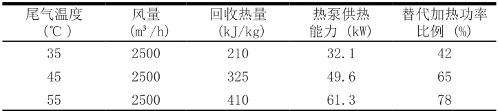 表1: 不同尾气温度条件下热泵回收性能数据