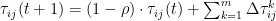 其中, ρ 为挥发因子,取值为0.1-0.5, Δτijk τikj 为第k 只蚂蚁留下的信息素。