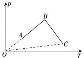 (2)正确分析:根据克拉伯龙方程,可推导出。这表明 p-T 图像上某点与原点连线的斜率才代表值。在 AB 段,图线为过原点的直线,因此各点与原点连线的斜率相等,体积保持不变。而在 BC 段,虽然直线斜率不变,但各点与原点连线的斜率却在逐渐减小,说明在减小,即体积在增大。综合分析,从 A到B 为等容过程,从B 到C 气体体积逐渐增大[2]。