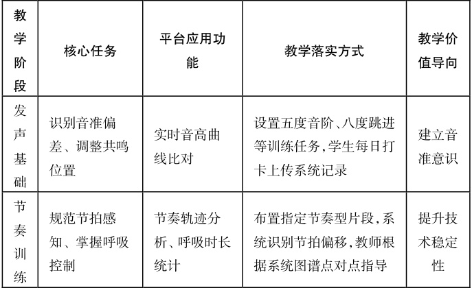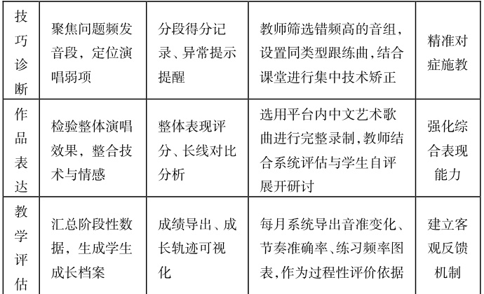 实践中教师可利用“学习强国”中的红色歌曲、民族艺术歌曲及思政专题等声乐内容,嵌入到课程主题单元之中。教学伊始阶段,教师需在课堂上播放《保卫黄河》的历史演唱版本并补充背景资料,引导学生了解作品的时代情境与精神内核。课堂分组讨论环节需围绕“如何在演唱中表达民族情感”展开,每组根据平台收集的相关演出视频来形成表达方案,并现场开展试唱对比活动。在专题教学周中,教师应设定“主题演唱”任务,结合国家纪念日安排如“清明节·缅怀英烈”“国庆·唱响祖国”等内容,且选用平台中推荐的曲目,由学生自主选择并深入挖掘歌词背后的文化意义。另外课堂演唱时教师需现场评议音准与技巧,同时还要从情感投入、审美理解、价值传达等角度作出具体反馈。在阶段性评价中,教师组织学生完成“音乐中的精神力量”主题任务,借助平台视频来围绕家国情怀、抗战精神、民族团结等关键词汇集内容,并设计出展览方案,形成课程总结成果。声乐教学的育人价值在这一过程中被不断显性化,经过平台资源与课程任务相融合后,学生可进一步提高自身思想水平。