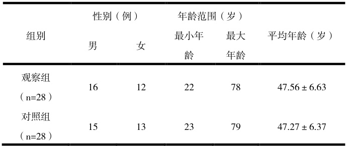 将我院于 2023 年 1 月至 2025 年 1 月收治的 56 例血液透析患者,随机分为观察组、对照组,各 28 例。两组患者临床资料如表 1 所示: