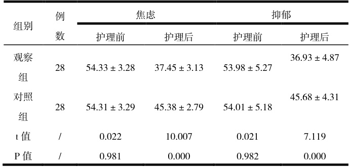 表 3.两组患者的心理状况对比(分, ±s )