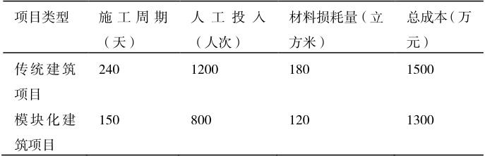 表 1 某国内模块化建筑项目施工数据对比