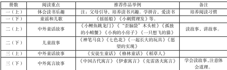 这份计划安排表呈现的特点:一是课外阅读作品种类繁多,满足了小学生阅读多样化的阅读需求。二是课外阅读从培养习惯开始,阅读内容及要求呈现阶梯式分布,螺旋式上升特点。三是依据学段特点,学生兴趣安排阅读主题,符合学生的认知规律。
