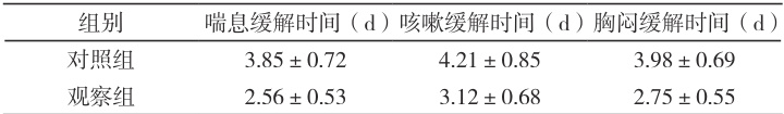 症状缓解时间:记录两组患者喘息、咳嗽、胸闷症状缓解所需的时间。