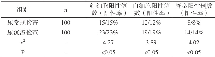 表1 孕妇尿沉渣与尿常规检查在尿液检验中的情况对比