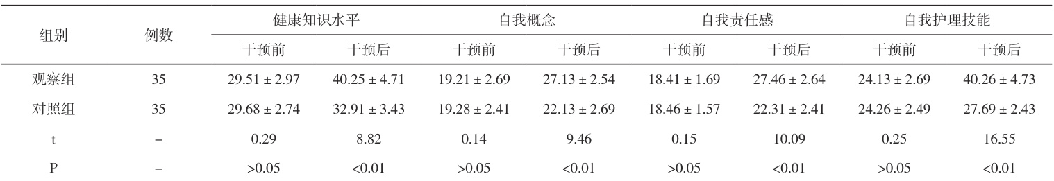 表2 自我护理能力情况表(