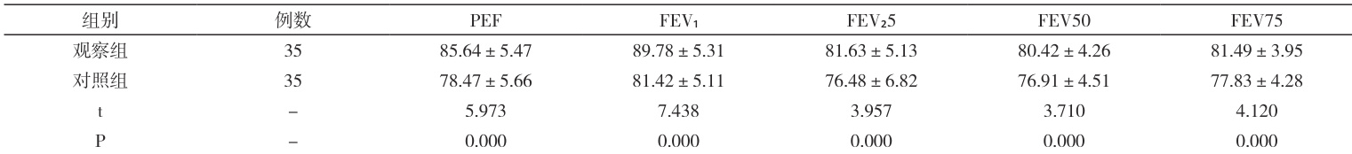 2.3 两组患者肺功能相关指标变化比较情况,具体详见表4。