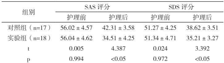 比较两组患者护理后SAS、SDS 评分(