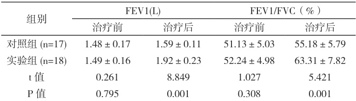 2.2 实验组患者肺功能指示优于对照组, p<0.05