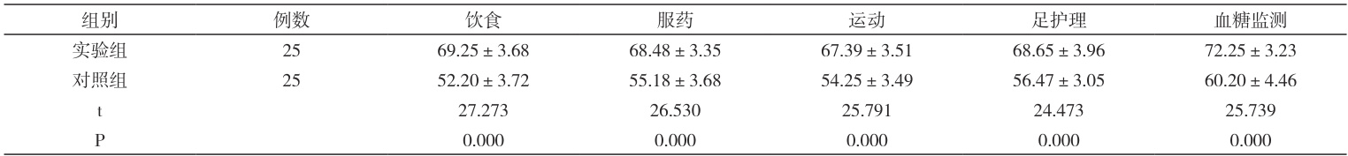 表1 两组自我病情管理能力对比(
