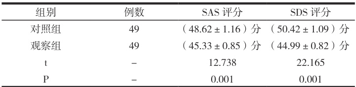 观察组SAS 以及SDS 评分低于对照组, P<0.05 ,如下所示: