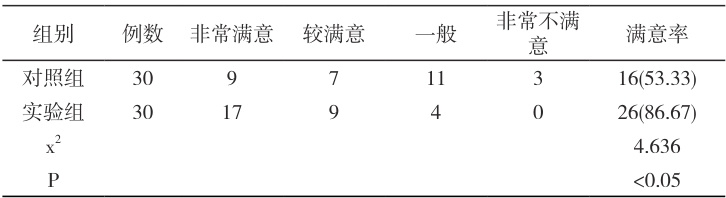 2.2 干预后,实验组护理满意度高于对照组, P<0.05 。