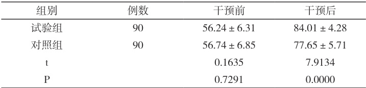 对比表 1 内的 WHOQOL-BREF 数据:未干预,差异不显著( ΔP> 0.05);干预后:试验组更高( P<0.05 )。