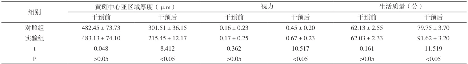 2.1 实验组视力恢复情况及生活质量均优于对照组, P<0.05⨀ 。