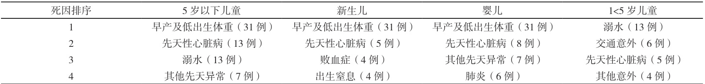 规体检和疾病救治等。在社会支持体系方面,外地户籍家庭在遇到困难时,可能无法像本地户籍家庭那样迅速获得社区、政府等多方面的支持与帮助,这在一定程度上影响了对儿童疾病的预防和救治效果。3.3 死亡归类分析