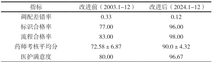表1 改进前后高危药品管理指标比较(