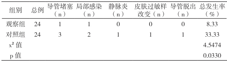 表1 两组患者 PICC 相关并发症发生率