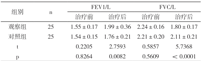 观察组患者的肺功能指标明显优于对照组,且差异具有统计学意