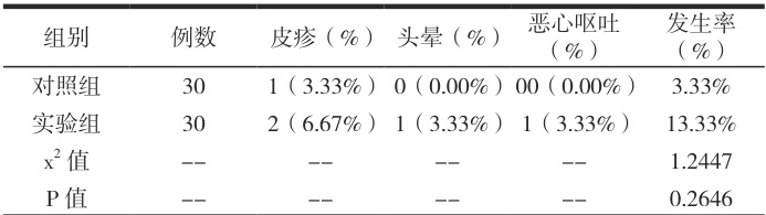 实验组不良反应发生率比较对照组无意义, P>0.05 。