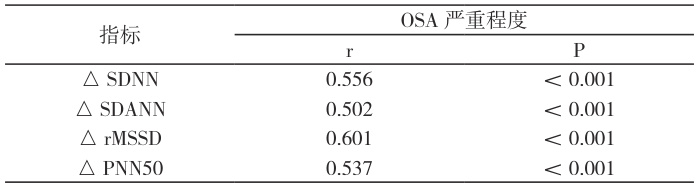表2 HRV 日夜间差值与OSA 相关分析结果