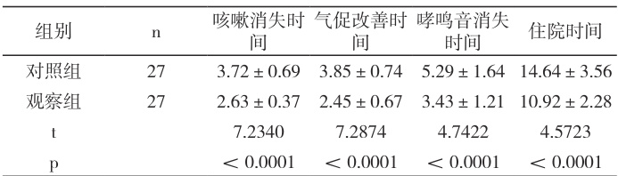 我院于2023 年1 月-2024 年12 月接收了56 名小儿重症肺炎患者,经综合比对本研究的纳入及排除标准,共纳入了54 例参与研究,其中,男 29 例,女 25 例,年龄在 3 个月 -5 岁之间,平均( 2.39±0.31 )岁。利用随机数表法将患者分为对照组、观察组两组,两组患者一般资料对比无明显差异( P>0.05 )。