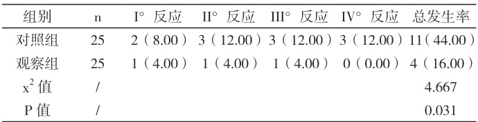 表1 放射性皮肤炎的发生情况(n, % )