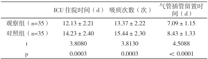 本研究结果表明,标准化早期康复护理在改善重症肺炎机械通气患者的临床康复指标方面具有显著优势( P<0.05 )。标准化护理通过系统化的体位管理和呼吸训练,有效促进了肺部分泌物的排出,减少了因分泌物潴留导致的反复吸痰需求,从而降低了气道损伤和感染风险。同时,早期肢体活动的介入能够预防肌肉萎缩和关节僵硬,改善患者的整体运动功能,间接缩短了机械通气时间,减少了气管插管相关并发症的发生[2]。