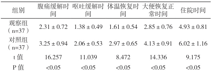 表1 患儿症状缓解时间和住院时间比较(d)