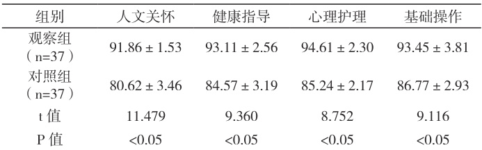表2 患儿家长护理满意度评分比较 (分)