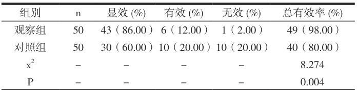 2.1 两组临床疗效比较