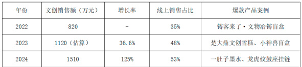 表 1:2022 年 -2024 年文创产品销售数据