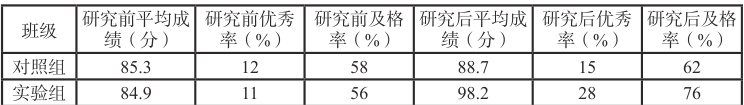 表1 实验组与对照组在研究前后的成绩及表现对比