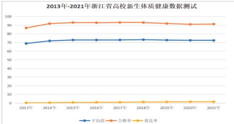 1.2013-2021 年浙江省高校新生体质健康抽测基本情况