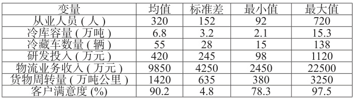 对选取的长三角地区三省一市冷链物流企业进行描述性统计,主要变量的统计结果如表3-1 所示。