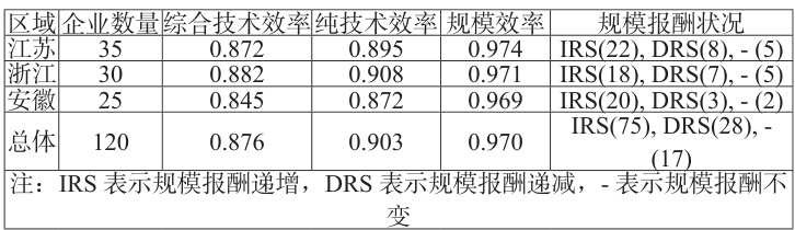 运用 DEAP 2.1 软件对样本企业进行 DEA 效率测算,结果如表3-2 所示。