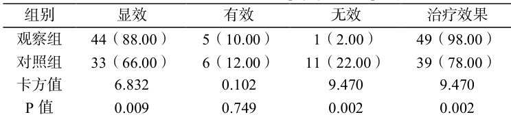 观察组治疗效果高于对照组, P<0.05 ,详见表 1 所示: