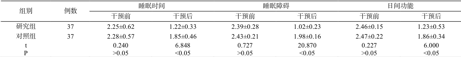 2.2 两组干预前后的睡眠质量比较