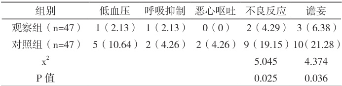 2.3 两组老年脊柱骨折患者的不良反应及谵妄发生情况观察组的发生率更高( P<0.05 ),见表4。