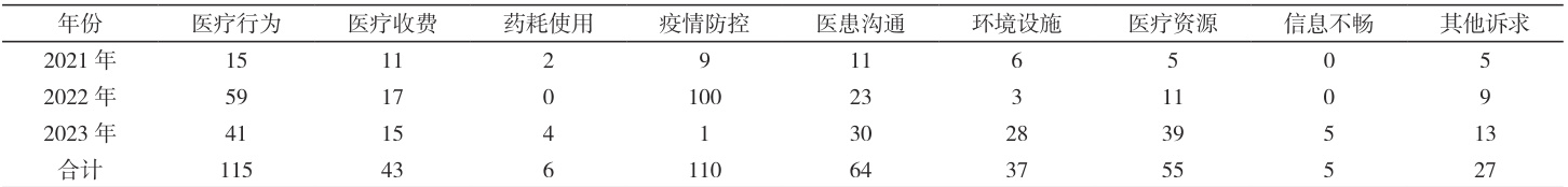 表1 2021-2023 年医疗诉求情况(单位:件)