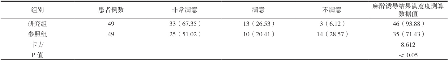表1 两组的麻醉诱导结果满意度测算数据值比较(n, % )